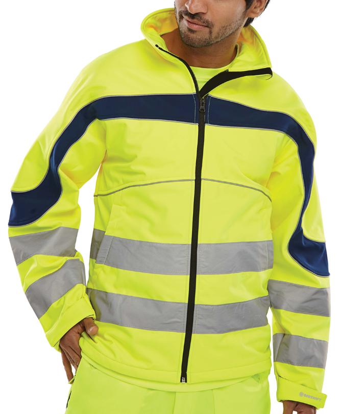 Beeswift Eton Hi-vis Soft Shell Jacket Saturn Yellow / Navy Size Large ET40SYL