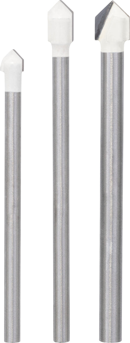 - For drilling in soft ceramic tiles and non-tempered glass with no need for lubrication