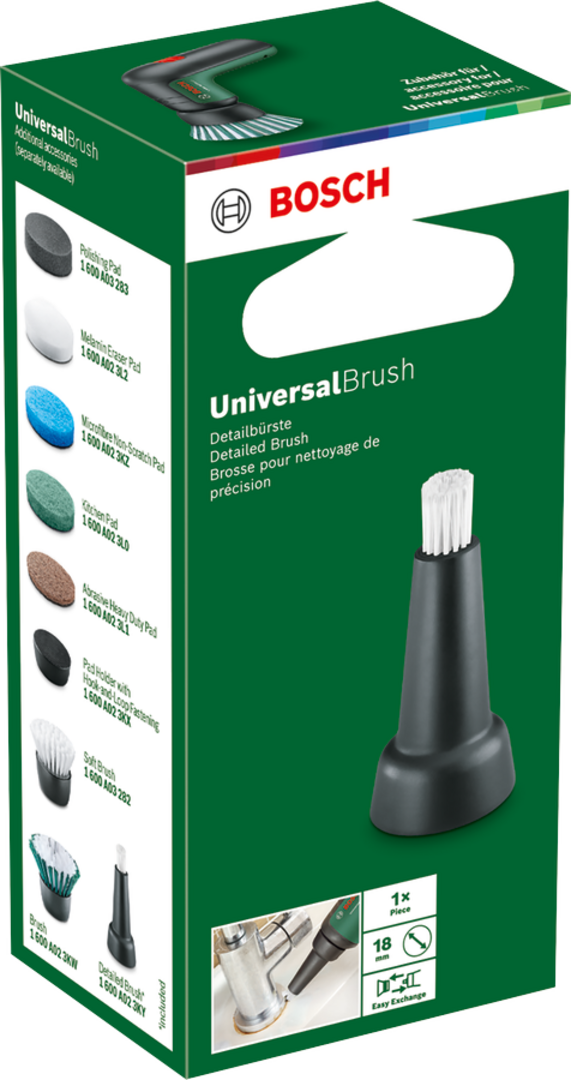 The Detailed Brush is the ideal for shine and cleanliness up to the last corner in the kitchen, bathroom, and the whole household. It can reach dirt almost anywhere. When it comes to the smallest detail, its small bristles reach dirt almost anywhere, especially in hard-to-reach areas such as corners or profiles. Easy to attach and with powerful rotation speed of 215 rpm, it can scrub various surfaces such as hard surfaces, fabrics, ceramic and porcelain, and aluminium and metal, as well as plastic and laminate. It is even acceptable for coated surfaces. Sustainably designed as it is dishwasher-safe up to 50°C and reusable.