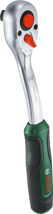 The high-performance Bosch 1/2Inch Ratchet is all you need when tackling DIY car mechanics and assembly tasks. The ratchet delivers an impressive high torque of up to 768 Nm, which is at least 50% above the current ISO standard (according so standard: ISO 3315). Its fine 72-tooth powder metallurgy gear allows a 5deg working angle for better power transmission and working in tight spots. The handy lock button ensures safe socket fixing and release. For fast directional change, an intuitive switch can be flicked from left to right. The two-component handle has ergonomic soft grip areas for added control and comfort.