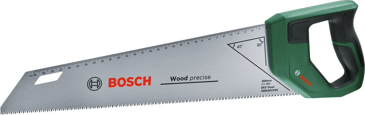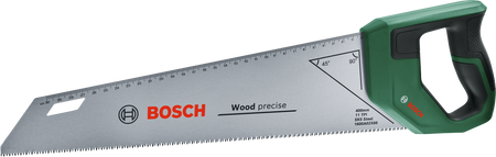 Build cabinets or cut longitudinal grooves with the outstanding performance of the Bosch Handsaw 400mm. For optimal force and tactile control, this saw features an ergonomic handle with a softgrip. The unique handle design is derived from the long-term Bosch expertise of cordless screwdriver handle designs. The versatile handsaw makes fine cuts in in materials such as soft wood, laminate, decorative trims and dowels thanks to its high-quality SK5 steel blade with 11 TPI. Induction-hardened 3 PT triple ground ultra-sharp teeth and a robust 61-68 HRC hardness boost the blade’s cutting precision and enhance the handsaw’s lifespan. Sawing is smooth and comfortable with this tool. Using the handy backwards running 30 cm metric scale on the saw and the 45deg and 90deg marking support, measurements can be marked directly on the workpiece. Thanks to a reuasable blade guard, this handsaw is safe to transport and store.