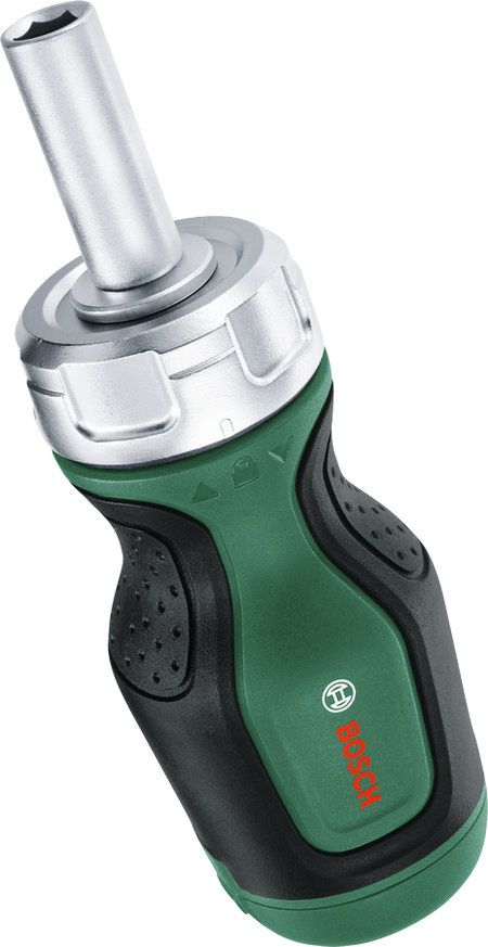 The Bosch Stubby Ratchet Screwdriver with 6 bits inside its handle is the comfortable and convenient all-rounder for fast and efficient DIY. Composed of a powder metallurgy gear with 36 teeth, the ratchet delivers an impressively high torque of up to 50 Nm. An intuitive metal ring enables fast directional change by twisting from left to right, and there’s a middle position for manual screwdriving. A strong magnetic holding force keeps bits in place, and the right bit is always at hand thanks to the 6-bit magazine with S2 hard-steel, colour-coded bits. This ratchet screwdriver is ergonomically made for comfort with a soft grip, two-component handle, and its compact size makes hard-to-reach screwdriving and precision tasks easy.