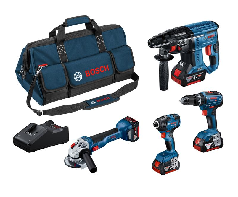 - Featuring a brushless combi, brushless impact driver, SDS hammer delivering 2J of hammer energy for fast work, and a 125mm 18V angle grinder with added intelligent safety features such as restart protection and kickback control