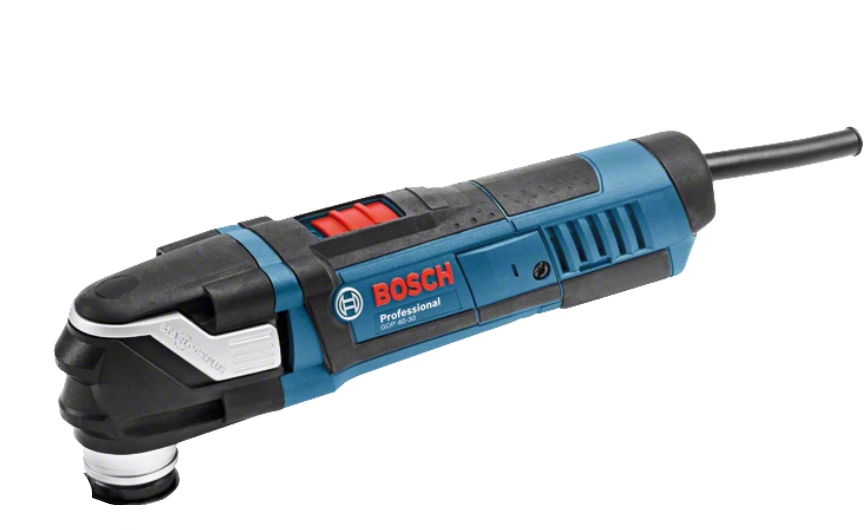 The GOP 40-30 Professional corded multi-tool is the strong all-round performer in the Bosch StarlockPlus category. It features a strong 400 W motor combined with a superior Starlock interface with an optimised 3-dimensional tight-fitting connection between the machine and accessory for the highest possible power transmission. The multi-tool also has a small ergonomic handle grip providing comfortable handling and better tool control. Furthermore, its Snap-in function enables fast and easy tool accessory changes.