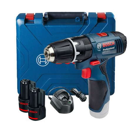 The Bosch GSB 120-LI 12v cordless combi hammer drill is an entry level lightweight and compact drill which is part of the Bosch Professional 10.8v / 12v cordless range. At only 188mm long from front to back, it is especially useful when trying to drill or drive screws in tight spots.
