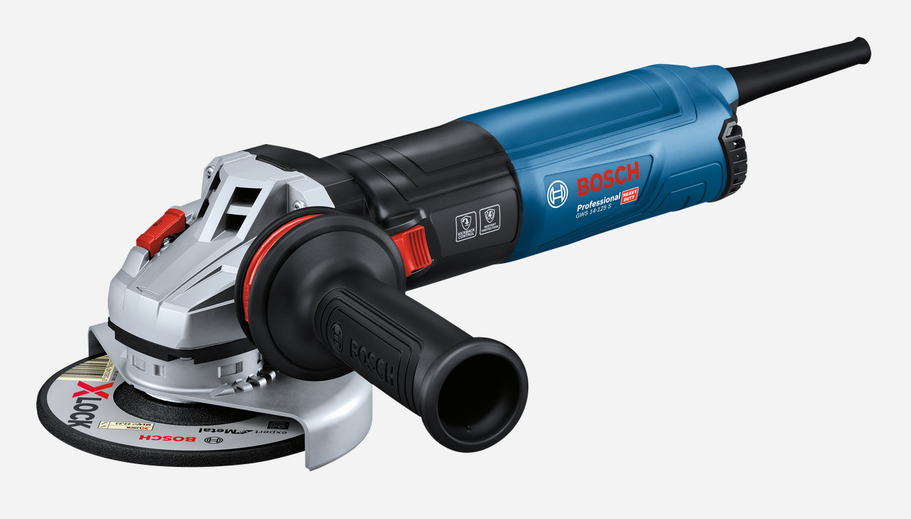 The GWS 14-125 S Professional is ideal for grinding metal and welding seams or cutting metal, concrete, bricks, and tiles. The compact angle grinder is compatible with Bosch’s dust extraction systems GDE 125 EA-T Professional and GDE 115 / 125 FC-T Professional.