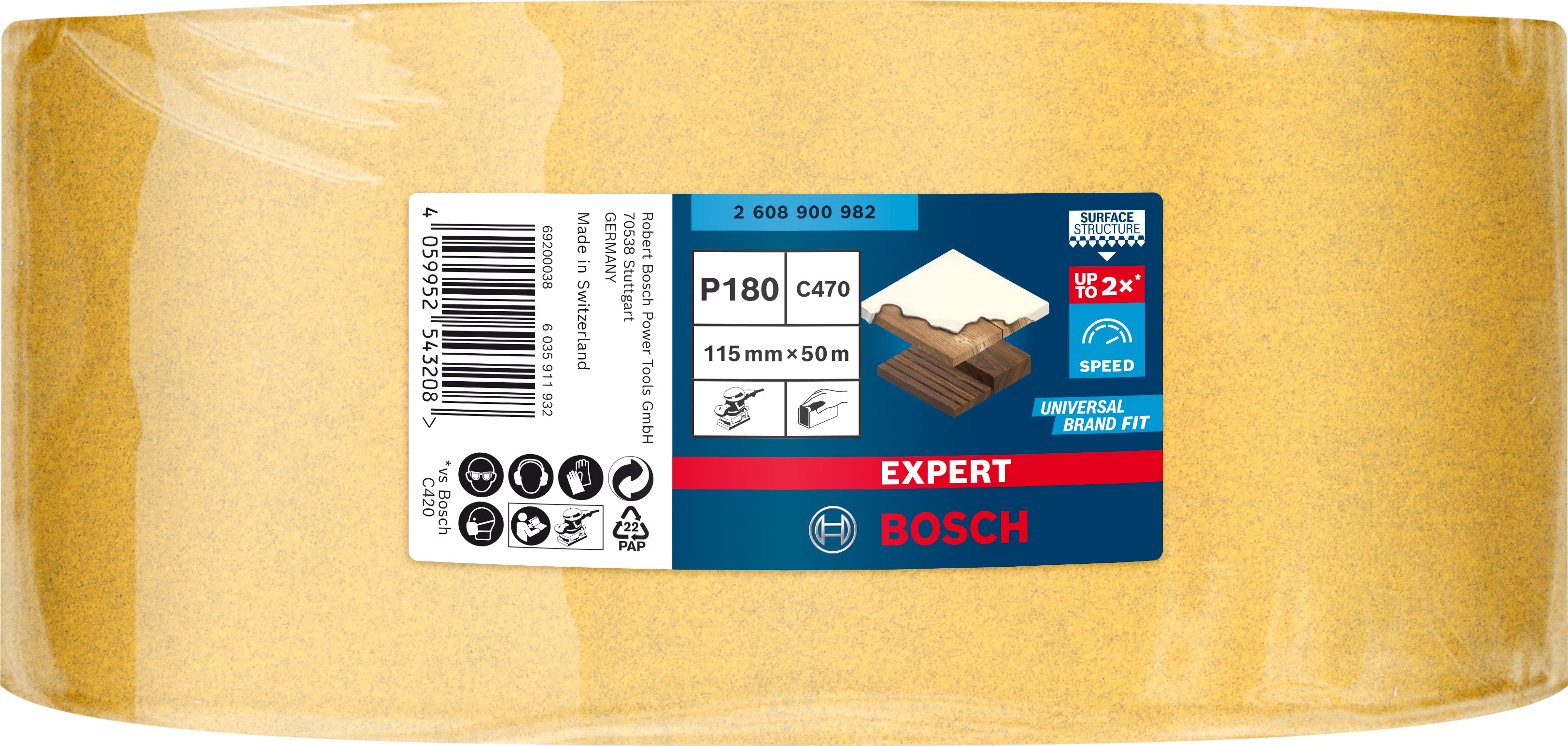 - Bosch EXPERT C470 Sandpaper Roll for Handsanding 115 mm x 50 m. G 180 2608900982