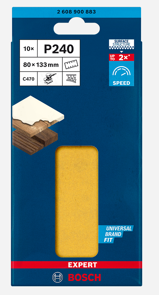- 10 x Bosch EXPERT C470 Sandpaper with 8 holes for Orbital Sanders 83 x 133 mm 240 Grit
