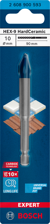 Extremely durable drill bit tip with Bosch Carbide Technology.
