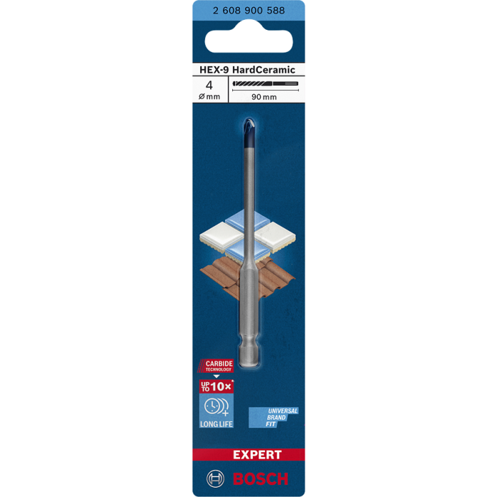 Extremely durable drill bit tip with Bosch Carbide Technology.