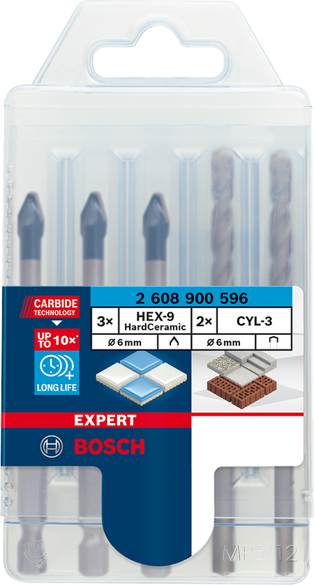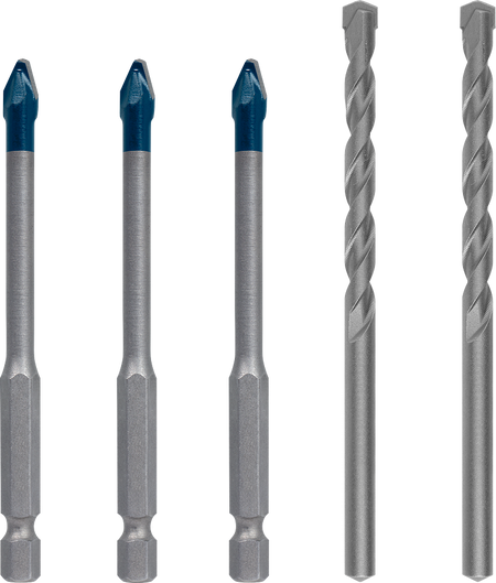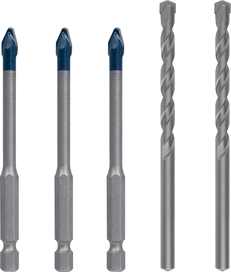 5-piece HEX-9 Ceramic tile drill bit mixed set; 2 CYL-3 concrete drill bits (6x90 mm) 3 HEX-9 hard ceramic drill bits (6x100mm)