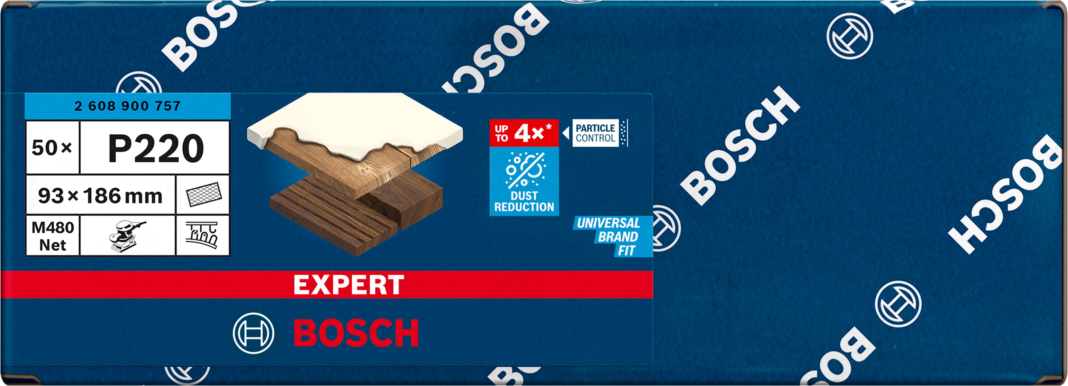 - Bosch EXPERT M480 Sanding Net for Orbital Sanders 93 x 186 mm. G 220. 50-pc 2608900757