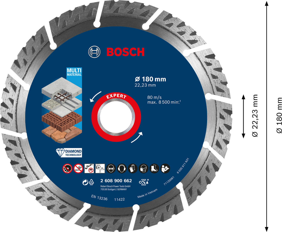 This mix of optimum diamond grits and advanced design mean the Bosch EXPERT Multi Material Diamond Cutting Disc offers unmatched longevity. It cuts reliably for longer than even other Bosch diamond discs, ultimately providing great value.