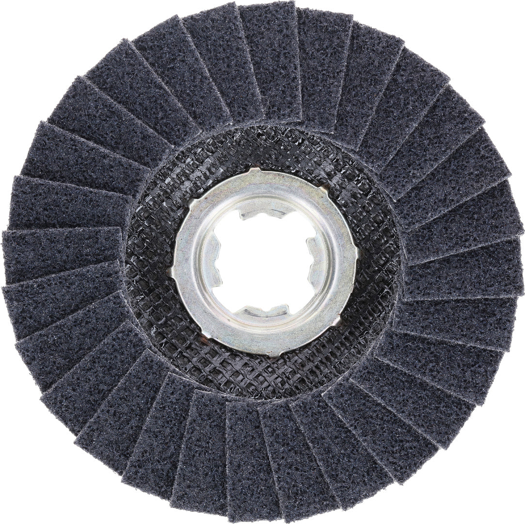 Part of the Bosch Surface Structure range of advanced abrasives, the EXPERT N475 SCM Disc combines the toughness of aluminium oxide grits with a 3D non-woven structure to give a fast cutting SCM which does not smear. These discs are ideal for refining #36 fiber disc scratches on mild steel.