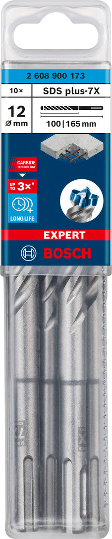 For construction professionals drilling concrete and reinforced concrete regularly, for example for fixings and installations, the Bosch EXPERT SDS plus-7X Hammer Drill Bit offers peerless performance, reliability and longevity. It is THE EXPERT accessory for SDS plus rotary hammer drills.