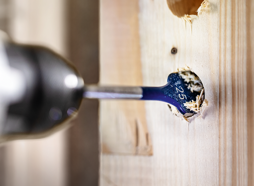 Self-feeding thread offers effortless, high-speed drilling. The screw tip is designed to draw the bit into wood without pressure from the operator.