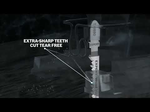 Ensuring the ‘clean side’ of a jigsaw cut is on the visible part of the work material has always been an art among joiners and woodworkers. Sometimes you can turn the workpiece over, other times the jigsaw itself can be held upside down. Or you could use the EXPERT Wood 2-side clean, that offers a perfect tear-free cut on both sides thanks to its double rows of teeth.