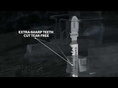 With its extra sharp precision-ground teeth, the Bosch EXPERT Wood 2-side clean Jigsaw Blade is well suited to cutting softwoods up to 50mm thick. Cabinet makers can get a perfect finish and not lose time sanding after every jigsaw cut. Available for straight cuts (T308B), for curve cuts (T308BO) and for accurate angle cuts (T308BP).