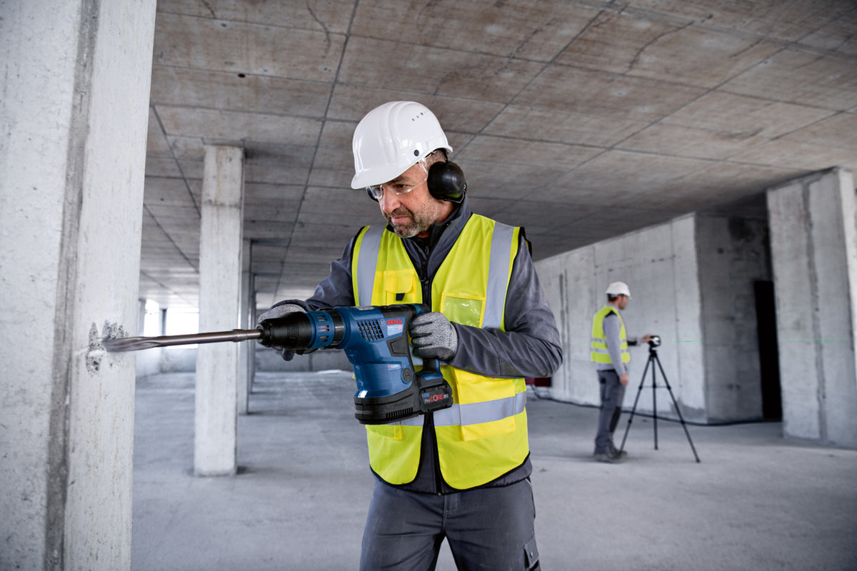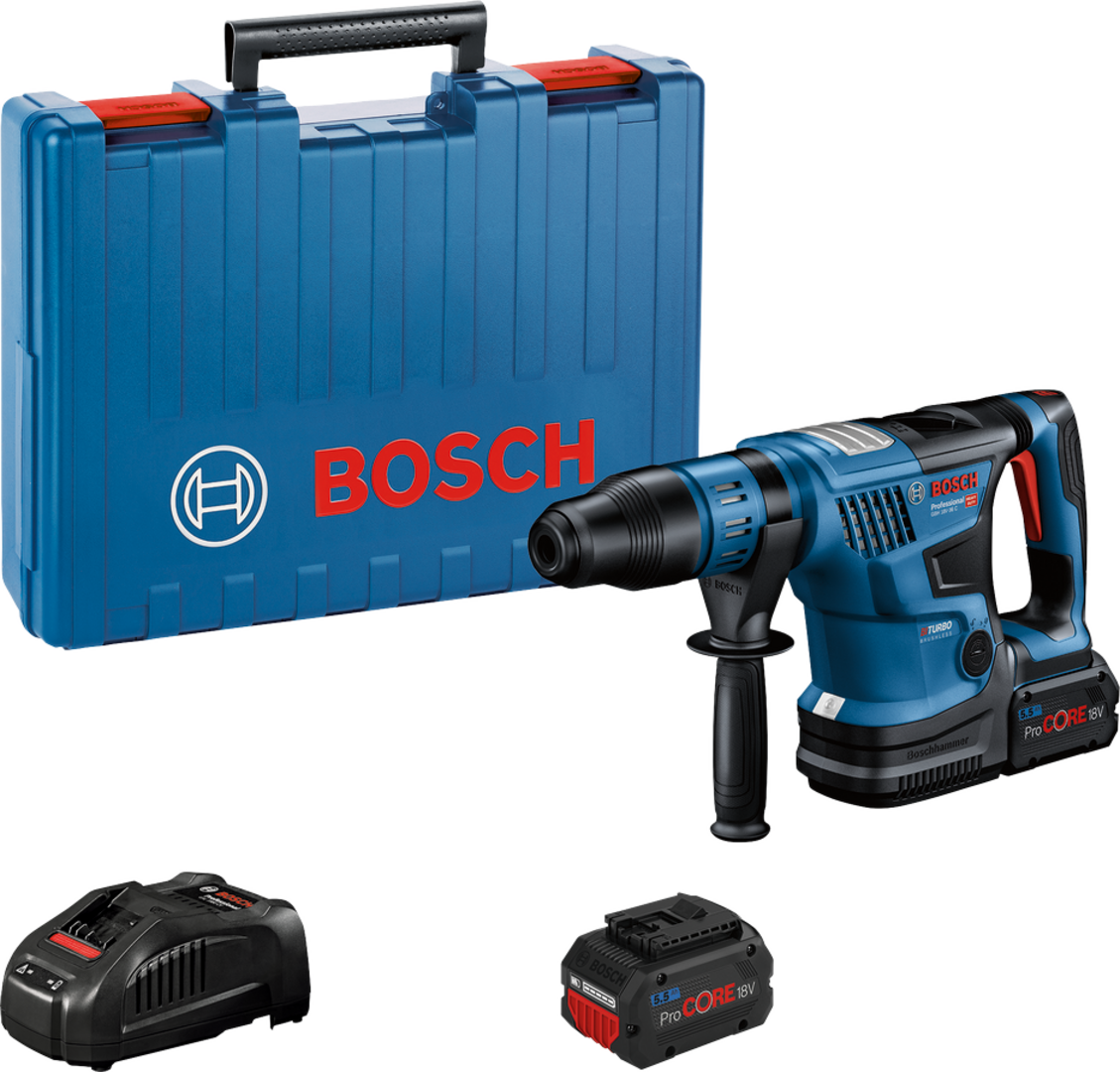 The GBH 18V-36 C Professional combines extreme compactness and high power for tough jobs in concrete. Lightweight at 6.1 kg, its design is significantly more compact and lighter than any other cordless SDS max hammer on the market. , The hammers BITURBO Brushless technology delivers an outstanding performance of 7.0 J max. It is compatible with all Bosch Professional 18 V batteries and chargers (Professional 18V System). For maximum power, use ProCORE18V = 8.0 Ah. Also compatible with AMPShare, the multi-brand battery alliance. , It has a user interface with Bluetooth connectivity for real-time tool status and different tool modes, as well as new electronic features like soft start when drilling and chiselling and a lock-on button for chiselling, making it the smartest hammer available.