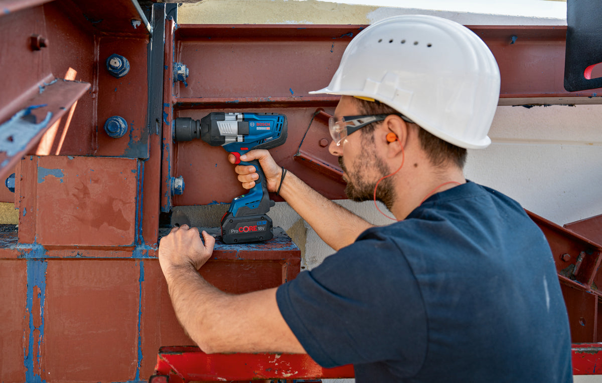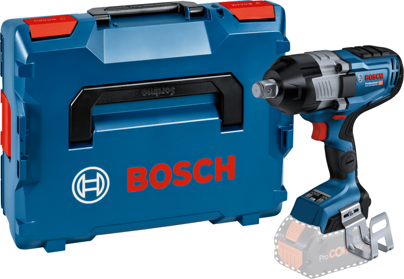The GDS 18V-1600 HC Professional is the exceptionally powerful 3/4 impact wrench with BITURBO Brushless technology for the toughest, heavy-duty applications. The built-in brushless motor combines corded power with cordless freedom and is fully optimised for ProCORE18V batteries, delivering a strong 1,600 Nm tightening and 2,200 Nm breakaway torque. Thanks to the adjustable Auto Bolt Release (ABR) mode, you can avoid the loss or drop-down of metal bolts or nuts when loosening them, ensuring comfortable handling. High versatility in power control is provided by the 3-speed/torque settings that allow adjustments to the respective work requirements. All tool settings can be conveniently adjusted and customised via the Bosch Toolbox App. , The exceptionally strong GDS 18V-1600 HC Professional is suitable for all metal applications from M16 to M33 such as structural steel construction, pipe fitting, and maintenance of industrial machinery and construction vehicles. This impact wrench is ideal, whenever utmost power is required to remove rusted and painted bolts and nuts. The tool is compatible with all batteries and chargers in the AMPShare Battery Alliance including all batteries and chargers in the Bosch Professional 18V System. For maximum power, use ProCORE18V ? 5.5 Ah. , The impact wrench is equipped with Electronic Cell Protection (ECP), Electronic Motor Protection (EMP), a tool status indicator with LED light, a 3/4 tool holder with a friction ring and through hole, and a ladder clip.