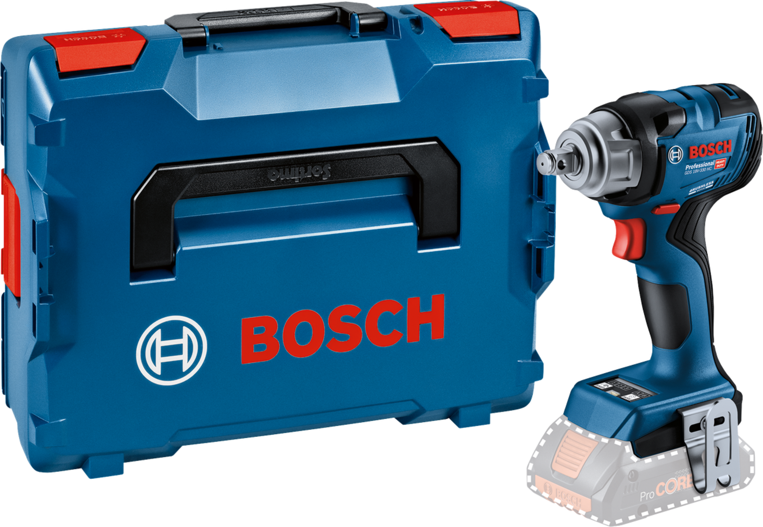 The compact and lightweight GDS 18V-330 HC Professional cordless impact wrench makes work easier. Its two default modes on the user interface, metal bolt/nut (A) and wood screw (B), ensure controlled application to prevent broken screwheads and the loss of metal bolts or nuts by slowing down or shutting off the impact wrench. Each mode can be adjusted conveniently to a specific application via the Bosch Toolbox App. 330 Nm tightening and 560 Nm breakaway torque deliver top performance. Greater flexibility and control are provided thanks to three different speed/torque settings. , The impact wrench is ideal for metal workshops/locksmiths, industrial assembly, framing, and vehicle maintenance using metal bolts/nuts from M8-M18. It is compatible with all Bosch Professional 18V batteries and chargers (Professional 18V System). Also compatible with AMPShare, the multi-brand battery alliance. , The GDS 18V-330 HC Professional comes with tool status indicator, LED light, and belt clip for added convenience.