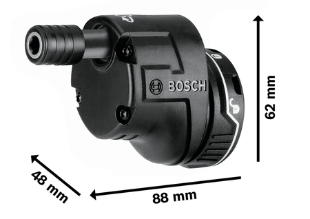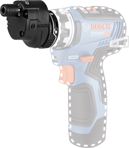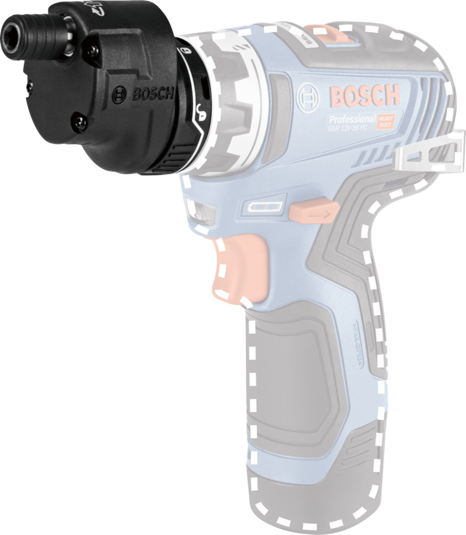 The FlexiClick Offset Angle Adapter will connect to your GSR 12V-15 FC Driver with a “One-Click” interface which ensures a tight fix to the machine at a glance. High flexibility – The GEAFC12 Offset Angle Adapter expands the application range of the HEX cordless screwdriver in working applications.