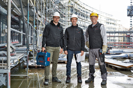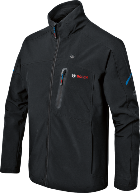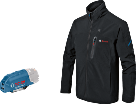 The GHJ 12+18V XA heated jacket is the perfect attire from Bosch to ensure dependable warmth for those who spend long hours on construction sites. Posing the ideal one-piece solution to staying warm despite harsh conditions and even when not moving too much, it renders layering multiple items of clothing unnecessary. This jacket’s three-zone heating makes for perfect heat distribution to keep the body core warm, no matter the conditions. With three heat levels, powered with Bosch’s 12 V batteries, long-lasting warmth is always taken care of. For added convenience, USB-powered devices are easily charged via the battery adapter’s integrated port. , The jacket’s heating pads are powered by the GAA 12V-21 charging adapter (included) and 12 V battery from Bosch or, optionally, by the GAA 18V-48 charging adapter and 18 V battery from Bosch (not included).
