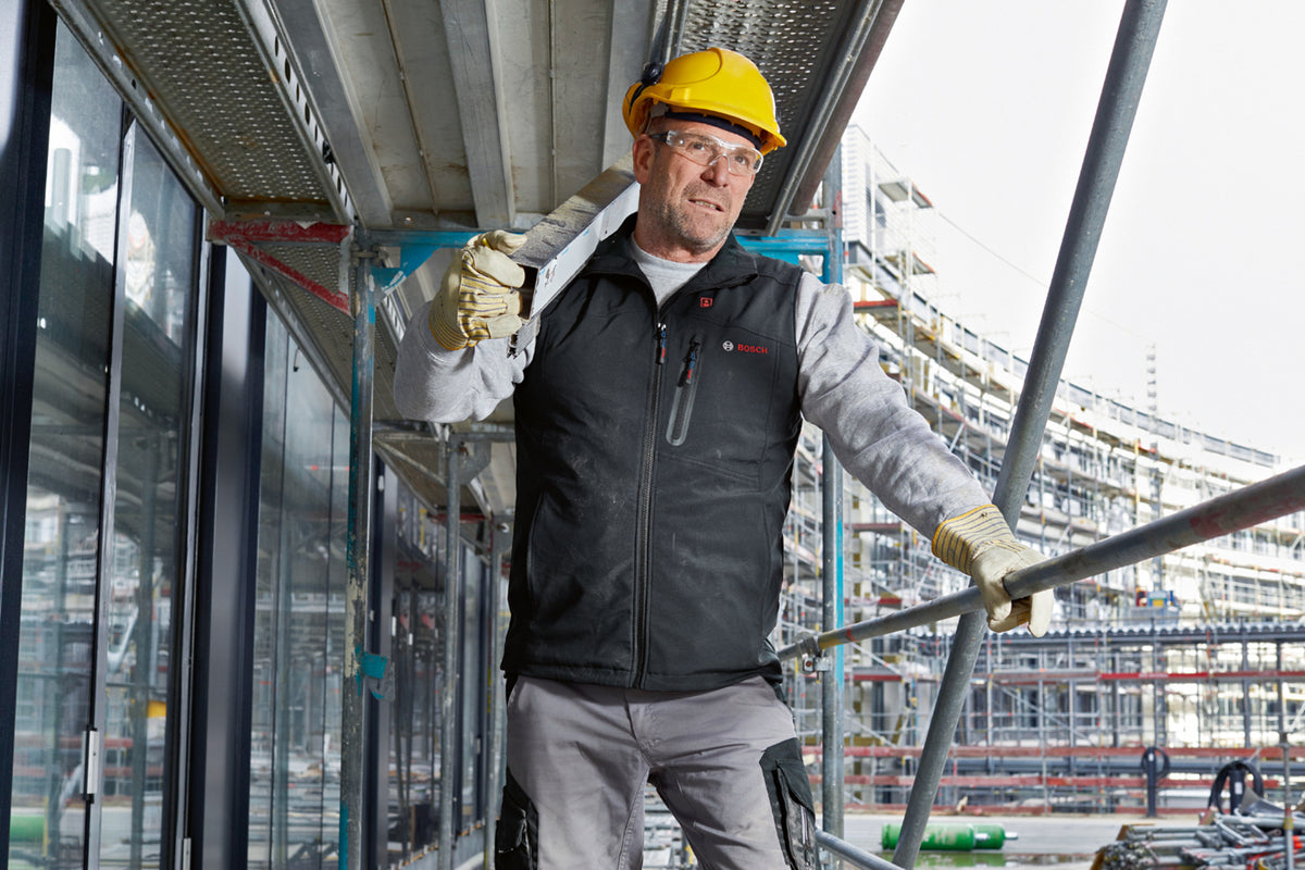 The GHV 12+18V XA heated vest is the ideal choice for everybody who desires consistent warmth of the body core without having to forgo maximum freedom of movement. Its smart design keeps the body warm and enables intensive physical work, especially with the arms, at the same time. This vest’s three-zone heating makes for perfect heat distribution to keep the body core warm all day. With three heat levels, powered with Bosch’s 12 V batteries, long-lasting warmth is always taken care of. For added convenience, USB-powered devices are easily charged via the battery adapter’s integrated port. , The jacket’s heating pads are powered by the GAA 12V-21 charging adapter (included) and 12 V battery from Bosch or, optionally, by the GAA 18V-48 charging adapter and 18 V battery from Bosch (not included).