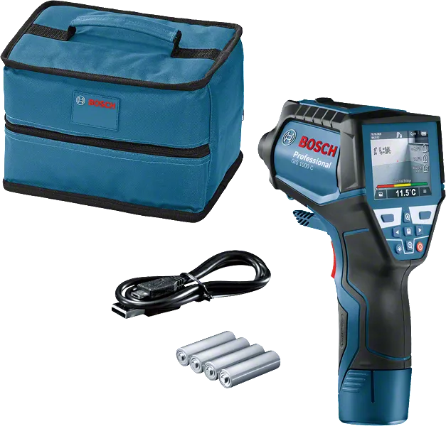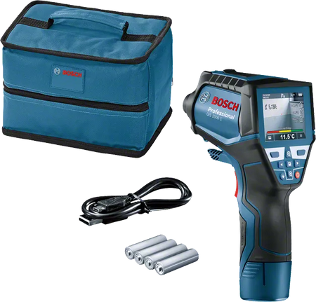 Infrared scanner, detects humidity and condensation, bluetooth connectivity, wide temperature range (-40degC ... +1000degC), high accuracy (±1degC), large 2,8“ colour display with unique, intuitive HMI, 4x AA batteries, carton