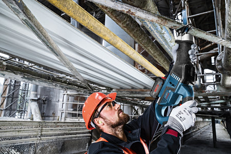 The GSA 18 V-32 Professional from Bosch is the latest powerful sabre saw for demanding applications. This compact model is designed for optimum comfort. The new ergonomic handle ensures that users can work anywhere, even in hard-to-reach places. Its equipped with vibration damping – in fact, it has the lowest vibration emissions among all of the power tools in its class.
