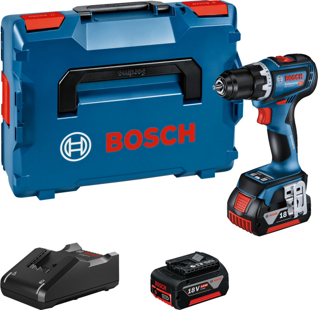 The GSR 18V-90 C Professional is a powerful cordless drill driver with a brushless motor that delivers top performance with 64 Nm and 2,100 rpm. Its compact head length of 163mm provides perfect tool handiness. The robust 13-mm metal chuck ensures great torque transfer for every job. The drill driver holds a very high level of tool control for both, increased user health and tool protection: The HMI offers switchable Kickback Control to reduce the risk of sudden rotational torque reaction in a bind-up scenario. A switchable Precision Clutch stops the overriding once a preset torque level is reached and, thus, reduces the wear and tear of the clutch and the resulting noise. , The tool is intended for drilling in wood with a maximum diameter of 68 mm and in steel with a diameter of up to 13 mm. The GSR 18V-90 C Professional is compatible with all Bosch Professional 18V batteries and chargers (Professional 18V System). Also compatible with AMPShare, the multi-brand battery alliance.