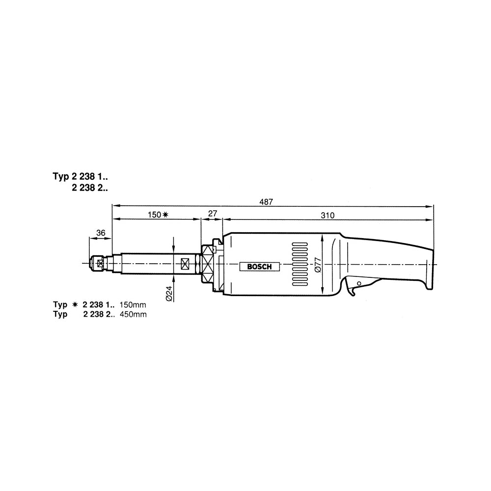 - Bosch HGS 57/50 LS corded straight grinder designed for high-performance grinding, deburring, and finishing applications.