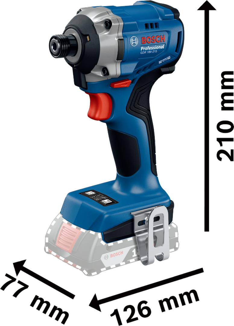 When your job involves driving in vast numbers of screws every day, you need a tool that gets the job done fast and accurately. With the GDR 18V-125 Professional, you get a tool that swiftly drives screws through wood or metal at 3,300 RPM. And with a torque of 215 Nm, it easily handles screw-driving into hard wood. It’s ideal for hard-to-access tight spaces thanks to its compact design. And there’s no risk of your work being anything less than perfect. The tool has 2 auto driving modes for metal and wood for screws with a head length of 121 mm (or 126 mm, depending on the selected model). It can also stop automatically or slow down when it reaches the surface of your material, so you get a good quality finishing. Plus, it is versatile and convenient thanks to its dual shank bit holder that can hold both NZ and MZ bit types (only applies to certain models). , The GDR 18V-215 Professional is ideal for wood and metal based materials. If you are working wiht wood, it easily drives 50mm screws and long screws of 80-140mm into wood frames. It is great with metal too, it drives self-driving screws into sheet metal of 3mm, M8 machine screw into pre-threaded metal blocks, self-tapping screws into sheet metal of less than 3mm. It also tigthen and loosen nuts less than M10