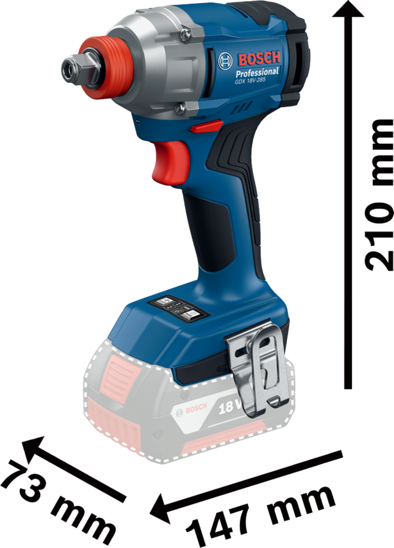 Whether you work outdoors or indoors, transporting and carrying multiple tools is a hassle. The 2-in-1 GDX 18V-285 keeps things simple, because for both screwdriving and bolting, you only need a single tool. This powerful tool produces 285 Nm torque and can perform bolting up to M18. The 2-speed selection allows you to choose the speed and torque best suited to your application. The 2-in-1 GDX 18V-285 Impact screwdriver optimizes bolting performance on M8, M10, and M12 bolts with its powerful torque and speed selector. This tool can also be used for screwdriving applications with self-drilling screws with diameters of 4.2 mm and 4.8 mm in sheet metal, with wood screws with diameters of 4 mm, 5 mm, and 8 mm, as well as with M6, M8, and M10 lag screws.