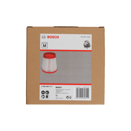 Square-Shaped Replacement Filter - The Bellows Filter is a replacement filter for use with Bosch dust extractors. Special filter which is square shaped and made of polytetraflourethylene (PTFE) with additional coating for very dust-intensive applications. For use with an appropriate category vacuum cleaner for wood chips, problematic dry dust and non-flammable liquids.