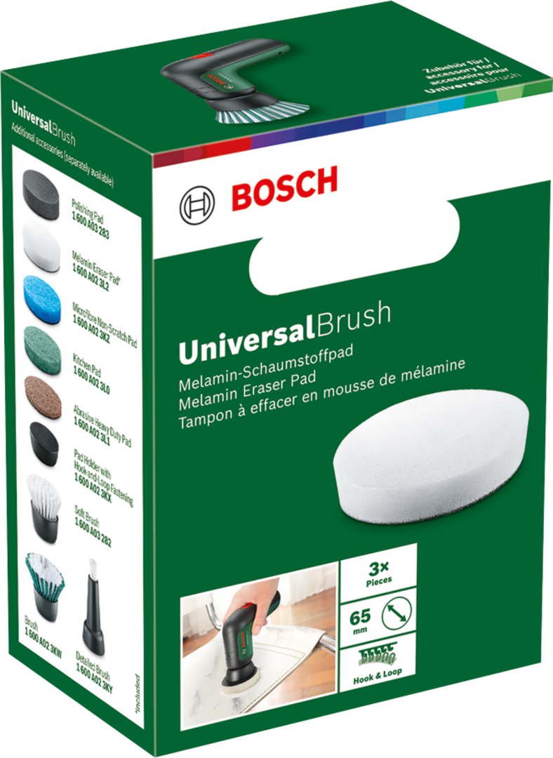 The versatile Melamine Eraser Pad is a real wizard in removing stains without abrasive cleaner. It excels in the removal of dirt from various surfaces such as glass surfaces, floors, skirting boards, doors, and shoes. Time saving and quick: The Melamine Eraser Pad removes stubborn dirt from worktops, glass surfaces, floors, skirting boards, doors, and shoes, without the need for abrasive scouring powder. It can be easily attached on the pad holder via its hook-and-loop system. The Melamine Eraser Pad is ideal for use on hard or coated surfaces and glass, but also acceptable for fabrics as well as plastic and laminate. The pad is sustainably designed as it is dishwasher-safe up to 50°C and reusable.