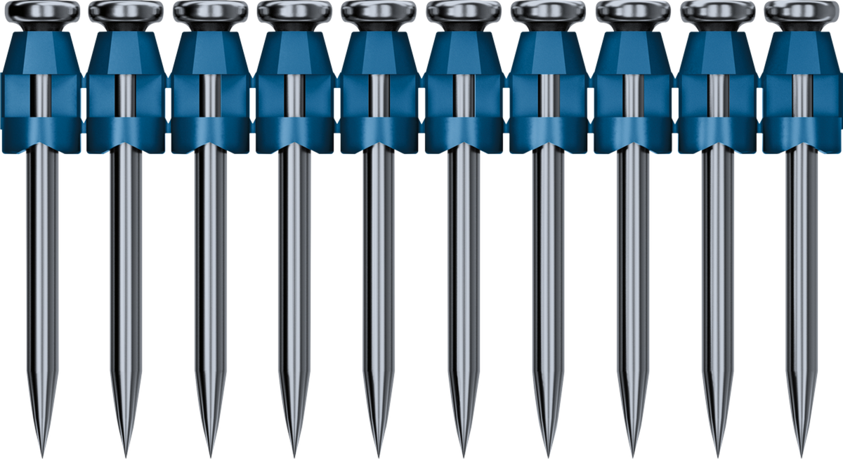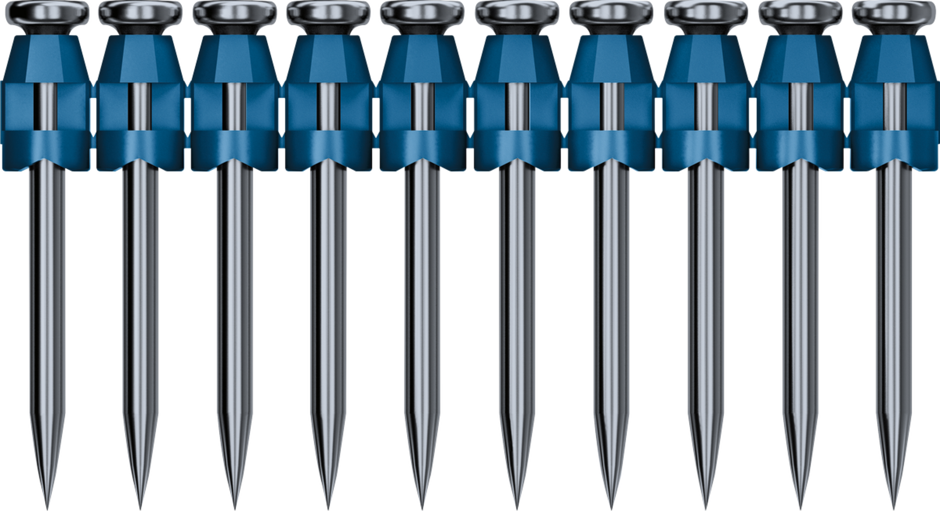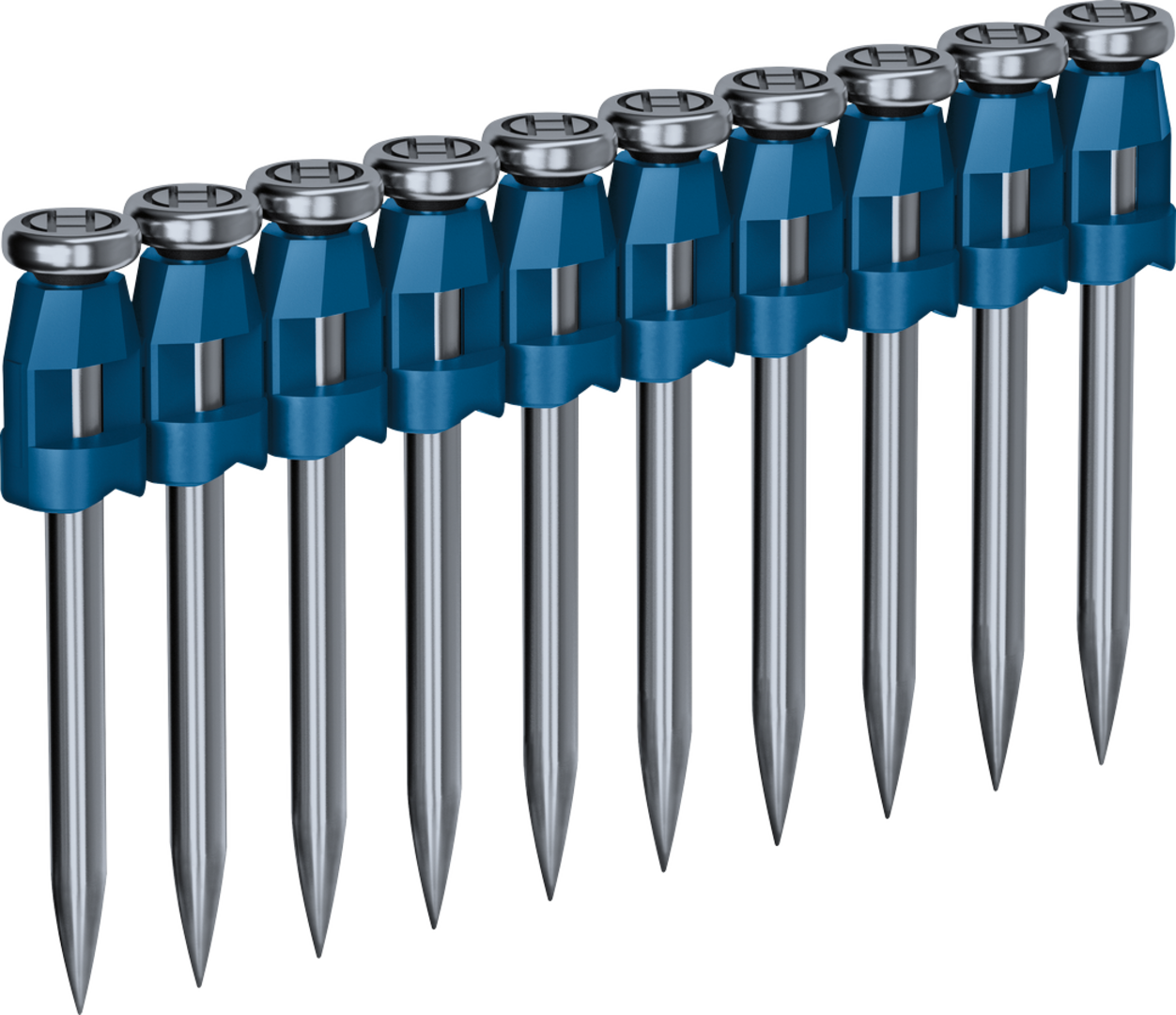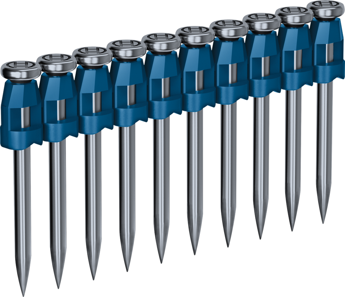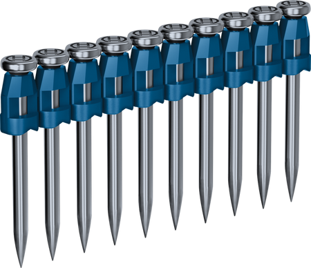 The Concrete Nail NB-38 is a carton of 1,000 ICC and ETA-certified 38mm concrete nails, designed for use with the GNB 18V-38 C. This product offers a diverse selection of nails in various lengths, making it suitable for multiple fastening applications. By obtaining both the tool and nails from a single source, you benefit from an optimized and certified system, ensuring reliable performance for all your concrete fastening needs.0