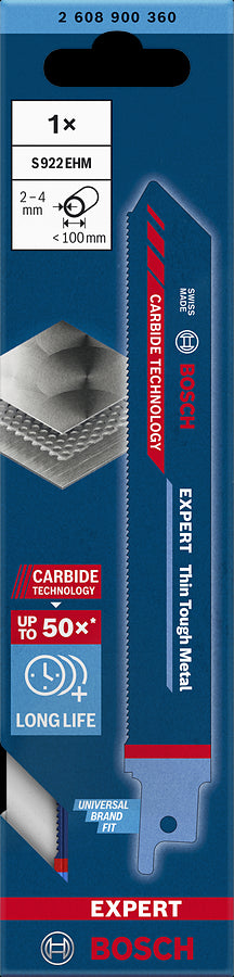 - 1 x Bosch Professional Expert S922 EHM Recip.Saw Blade Thin Tough Mater