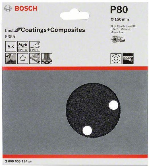 - 5 x Bosch Professional F355 Sanding Sheet 150mm, G80