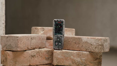 The GMM 1-15 Professional Material moisture meter is your go-to device for quick and accurate non-invasive moisture readings (without pins). It measures moisture content in 37 types of wood and 10 types of building materials, showing results on a high-contrast, colour LCD screen. The variable threshold scale makes reading results easy, while the reference mode allows you to compare moisture levels across different areas. Its robust design, rubber-enforced housing and IP65 rating ensure durability on tough jobsites, giving you a reliable performance every time - no matter the conditions.