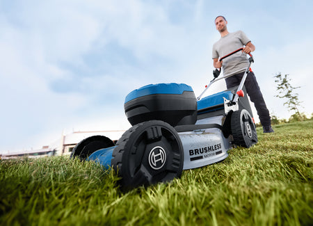Maintaining larger lawns often comes with rigorous demands that require a powerful lawn mower. The self-propelled, cordless, metal deck PRO GRA18V2-46SP lawn mower is a strong, reliable performer and part of the Bosch Professional 18V System. Its robust Brushless motor runs on two 18V batteries which together deliver high performance, increased runtime, and a long service life. Its step-less variable speed control enables you to select your perfect working speed - between 2.0 and 6.4 km/h - whilst mowing or transporting the mower. A soft-start feature ensures a seamless mowing experience and rubber wheels deliver the traction needed for more challenging conditions. The collapsible handle enables the mower to be folded down compactly for easy transportation with the option to store the mower in a vertical position. Its ergonomic soft-grip handle with 2-level height adjustment helps you to work with a healthier posture, making your work more comfortable and less tiring. The lawn mower has a cutting diameter of 46 cm and offers 6 cutting height levels, from 30 to 70 mm. The mower’s metal deck is extremely robust, capable of withstanding higher loads and supporting a longer product service life. Its 60 litre fabric grass bag and mulch plug give you the flexibility to either collect your clippings or use them as a natural fertilizer for your lawn.