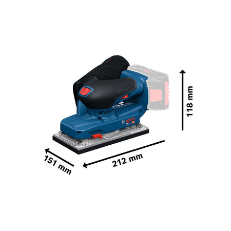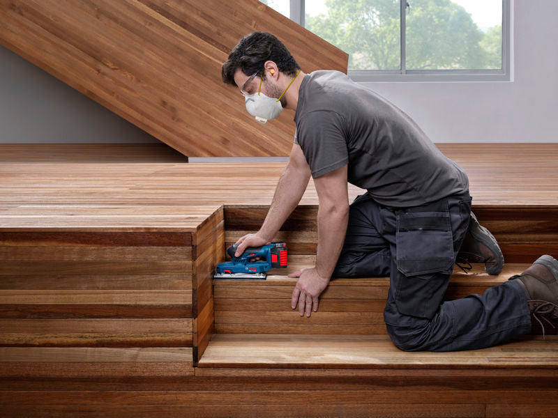 The cordless PRO GSS 18V-18 is designed for optimal control thanks to its low height of up to 118 mm and excellent tool balance. With its low vibration value up to 3.5 m/s2, you can work for longer periods without getting tired or your hand feeling numb. This sander comes with an efficient dust management solution with a high dust pick-up rate of 85% and easy dust disposal. The GSS 18V-18 is for sanding wood or metal surfaces and edges, dry wall/plaster, sanding surfaces before painting, and removing old paint. It is compatible with the Bosch Click&Clean system. This tool has a highly efficient brushless motor system with a run time of up to 35 minutes. It comes with an offset battery design for work close to the wall.