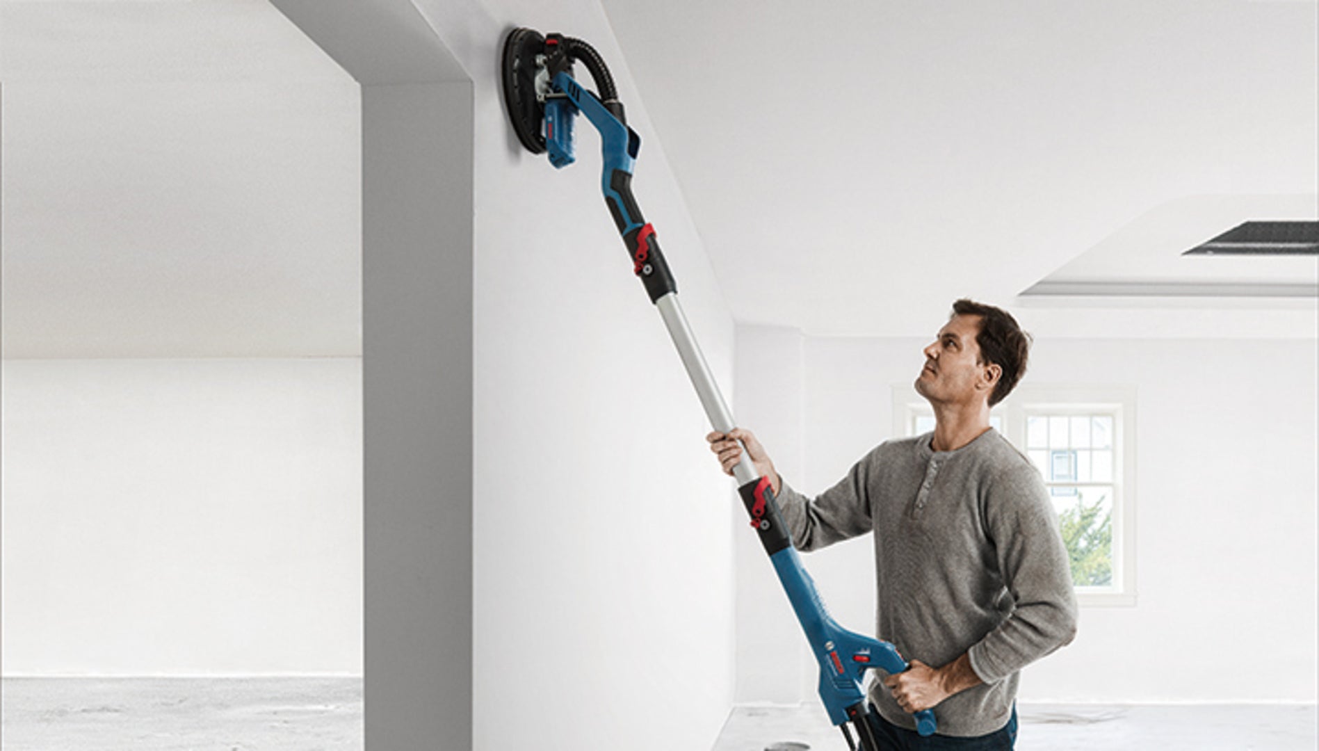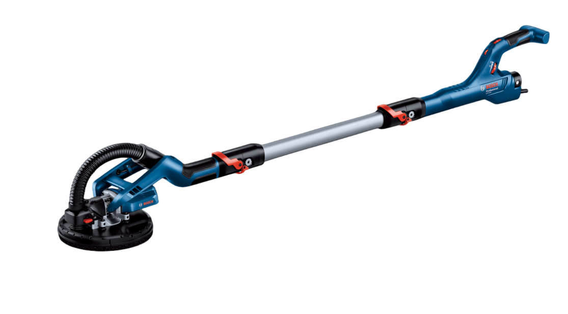 Designed to make the drywaller more efficient, the GTR 55-225 professional is the dependable partner for interior finishers tackling larger jobs. This drywall sander features a patented 'Ultra-Flexible Head' enabling effortless movement across walls and ceilings, and a reduced risk of surface damage. Its built-in ceiling suction feature minimises fatigue during extended applications, as the perceived weight of the tool is significantly reduced by the suction force generated from a connected vacuum. Also included on the GTR 55-225 is an ergonomic L-shaped auxiliary handle, providing maximum comfort and further reducing fatigue while sanding in awkward positions.