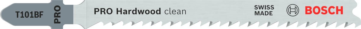 Lasts up to 5x longer than a Bosch T101B Jigsaw Blade - Are you a carpenter looking for a jigsaw blade to cut hardwood? A jigsaw blade that delivers straight, clean cuts? The PRO Hardwood clean T101BF will help you get the job done. We made the PRO Hardwood clean T101BF Jigsaw Blade from Bi-Metal: it has a high-speed steel (HSS) tooth strip bonded with a high-carbon steel (HCS) body to ensure you can tackle hardwood with ease. The blade has a tapered shape and fine-pitched teeth for clean, snag-free cuts. Use it to cut solid hardwood between 3 and 30 mm thick. Fits all T-shank jigsaws