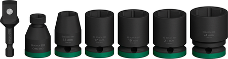 We made the sockets in the PRO Impact Socket Set from heat-treated CRMO (chrome-molybdenum) steel and gave them thick walls to make sure they resist high torque. We added a black phosphate coating to protect them from rust and corrosion. The sockets are laser-marked and colour-coded so that you can see the one you need right away. They feature a groove and a through hole for securing them on your impact wrench, using our pin and ring – whenever you need an extra strong hold. The adapters allow you to use the sockets with impact drivers and hex bits with impact wrenches for any lighter tasks below 80 Nm torque.