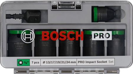 - Set contents - PRO Socket Adapter with Pin Connection, 1/4-inch Hex to 1/2-inch Square; PRO Impact Bit Adapter, 1/2-inch Square to 1/4-inch Hex