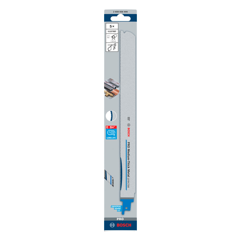 Offering both long life and a neat cut, the PRO Medium-Thick Metal precise S1237BEF is an advanced Bi-Metal design, with a HSS strip forming the curved teeth. Added to the thick carbon steel body, this is a great blade for seeking a quality, accurate cut in metal.