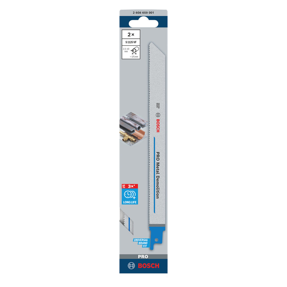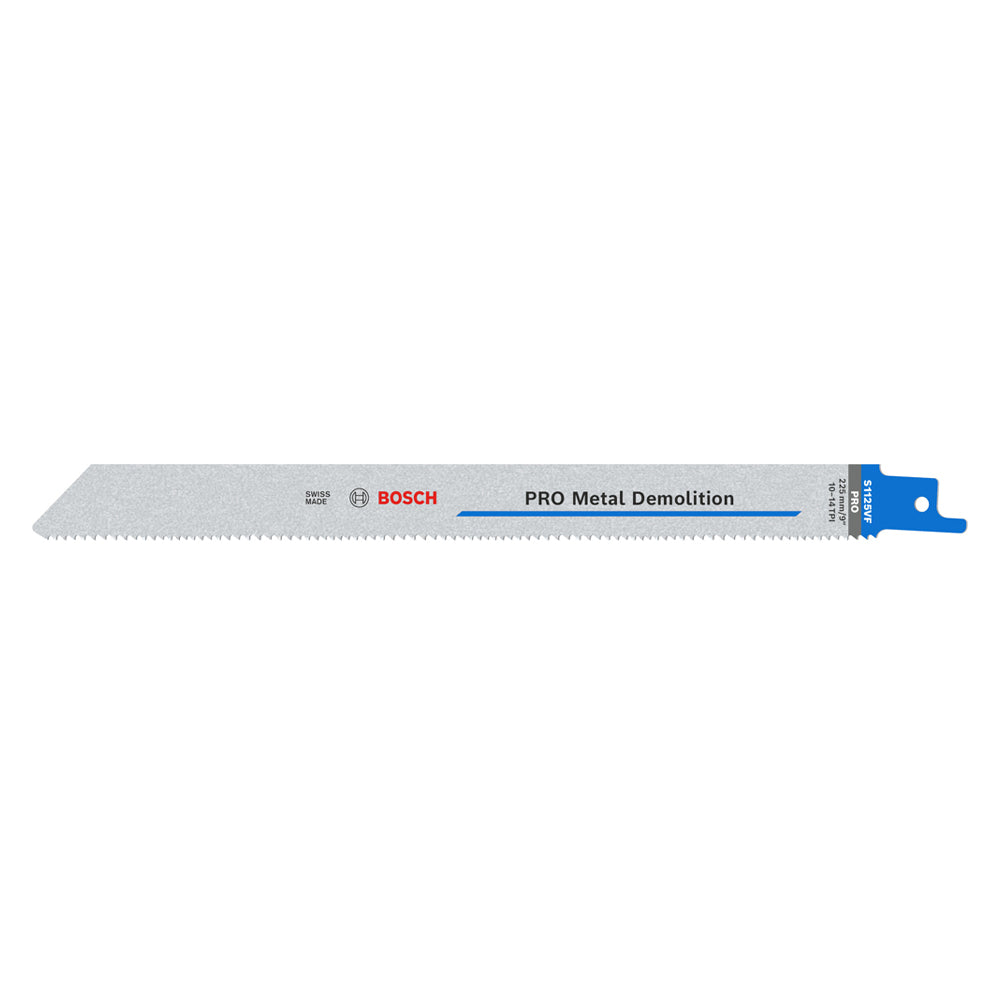 The PRO Metal Demolition S1125VF recip saw blade's robustness comes from its Bi-Metal build, pairing a thick gauge HCS body with hardened HSS teeth. The advanced Bosch Vario tooth design ensures a more efficient cutting action, for smooth cuts and longevity.
