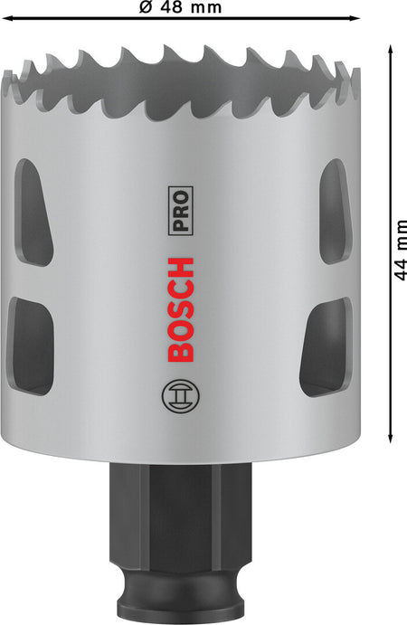 The PRO Multi Material Hole Saw has enhanced tooth design for fast and smooth cuts and high-cobalt HSS alloy teeth for longevity. It tackles steel cladding and drywall effectively. The Power Change plus makes changing hole saws and pilot drill bits faster and removing material plugs easier.