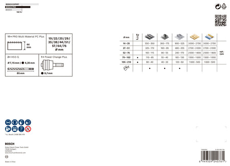 The PRO Multi Material Hole Saw has enhanced tooth design for fast and smooth cuts and high-cobalt HSS alloy teeth for longevity. It tackles steel cladding and drywall effectively. The Power Change plus makes changing hole saws and pilot drill bits faster and removing material plugs easier.